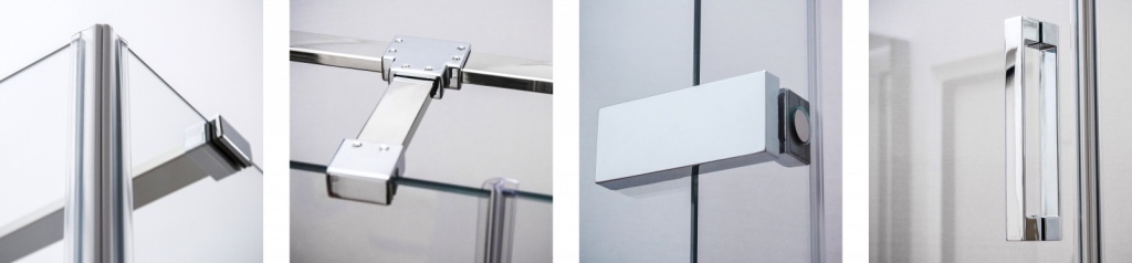 Jednodílné křídlové dveře jsou s pevným dílem spojeny pomocí otvíravého chromového pantu. Dveře jsou opatřeny velkým pohodlným madlem. Součástí je také prahová lišta a gumová těsnění, která zabraňují protékání vody. Dveře je možné kombinovat s boční pevnou stěnou, která je vyrobena stejně jako pevný díl dveří.